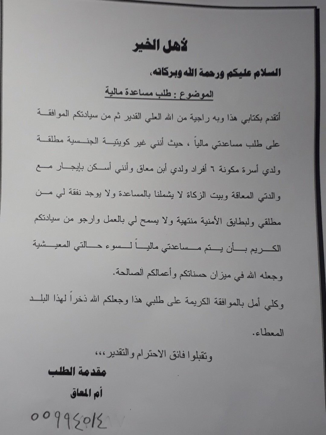 نموذج رسالة طلب مساعدة مالية من اهل الخير