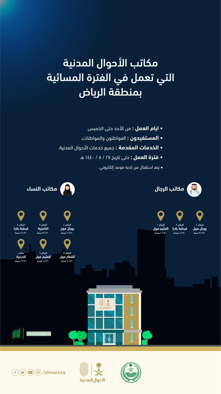 الأحوال المدنية On Twitter مكاتب الأحوال المدنية التي تقدم خدماتها للنساء والرجال في الفترة المسائية بمنطقة الرياض
